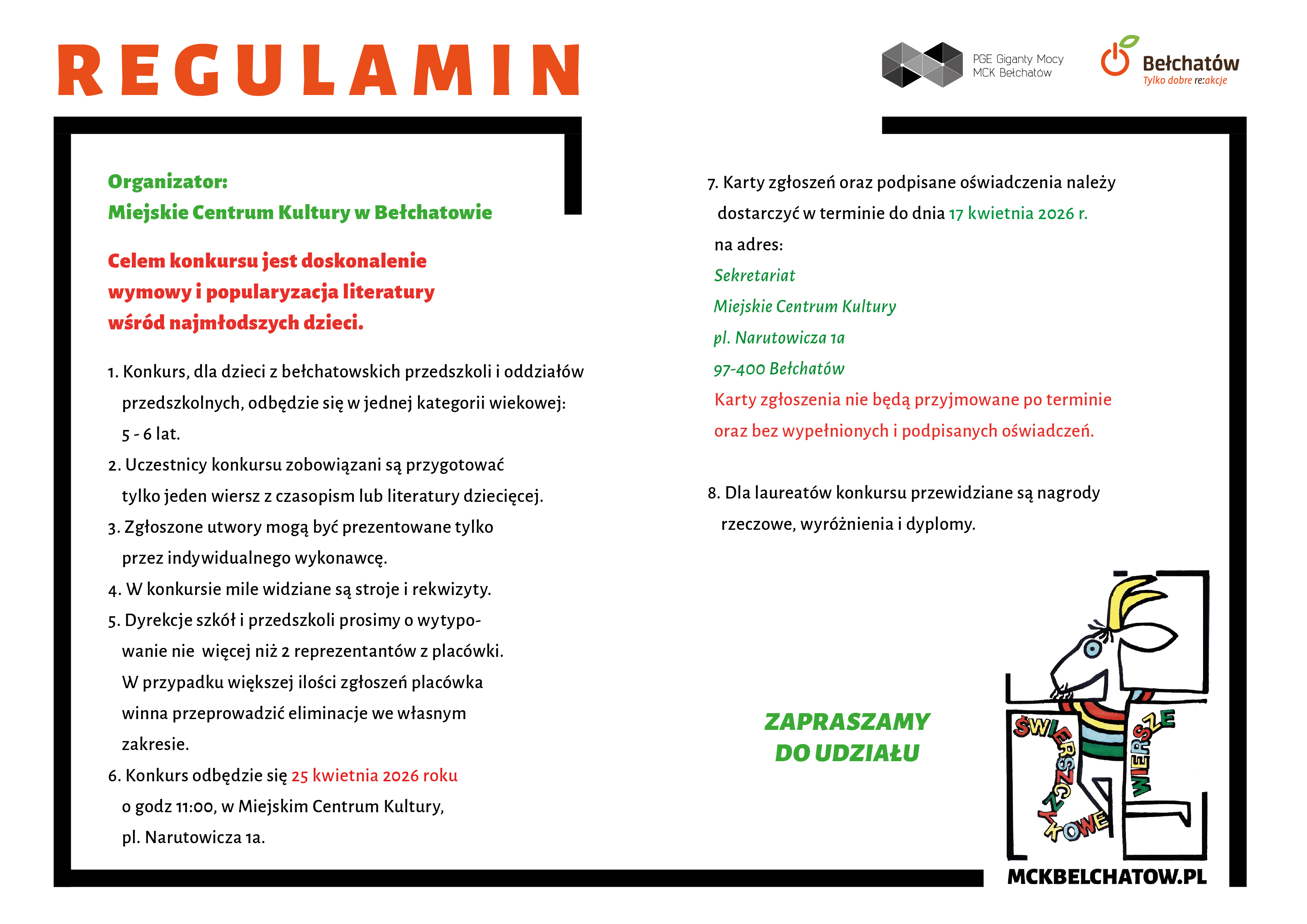 Dyrektor Przedszkola Samorządowego nr 7 im. Krasnala Hałabały w Bełchatowie informuje, że liczba wolnych miejsc na rok szkolny 2026/2027 wynosi łącznie 34.